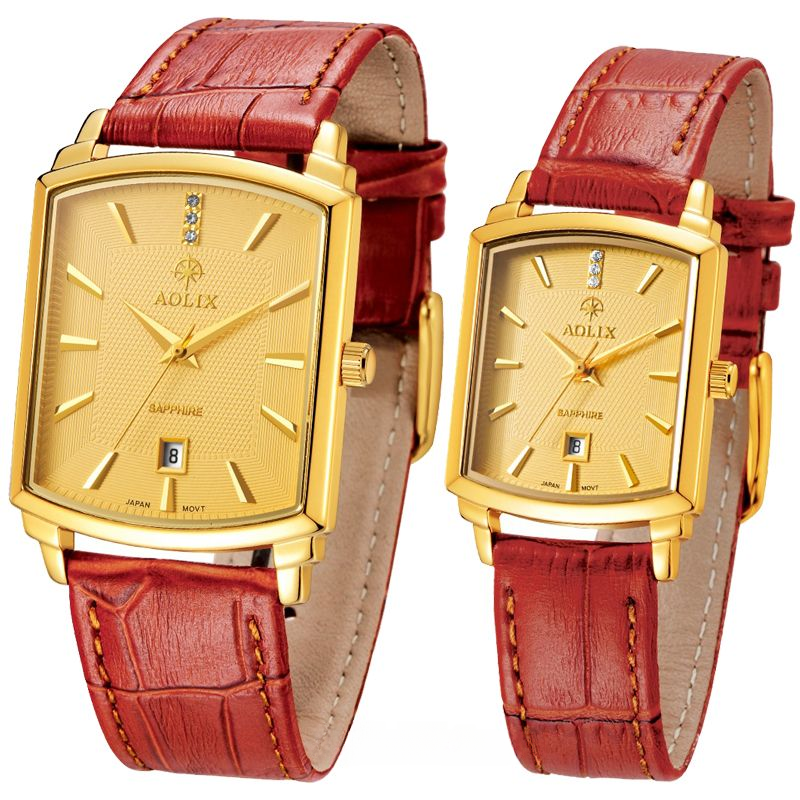 Đặt mua Đồng hồ đôi Aolix AL-9099 dây da chính hãng