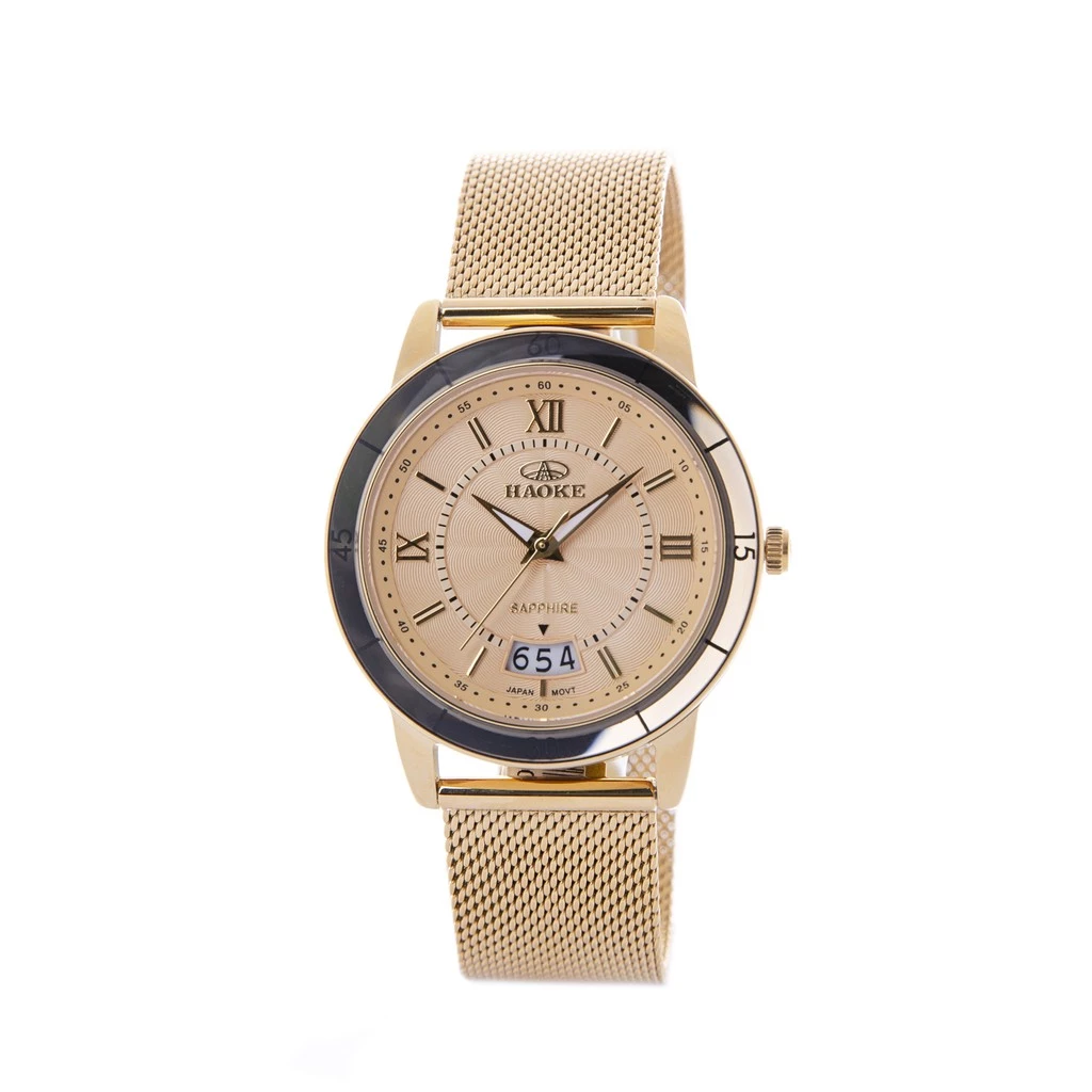 Đặt mua Đồng hồ HaoKe nam vàng mặt vàng dây lưới sapphire